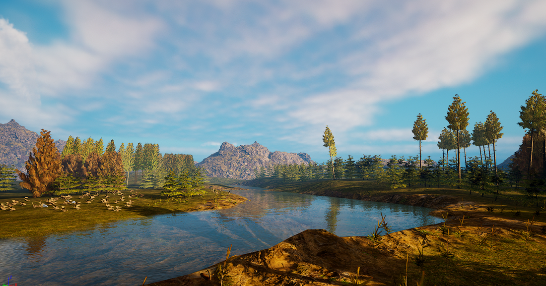 The overall environment was decided to be a wide-open forest with a pond at the back of the player’s view and a lone tree with the target at the front of the player’s view. Players were free to look around and let the environment “sink in” to increase their immersion in the game.